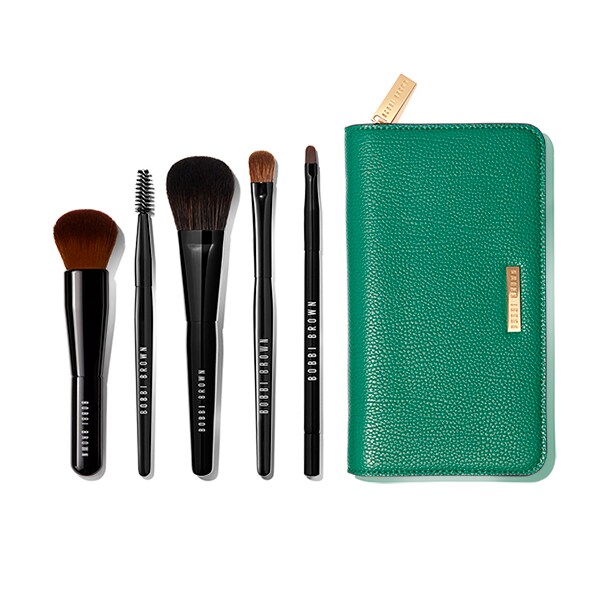Набор из пяти кистей в travel-формате для нанесения макияжа.