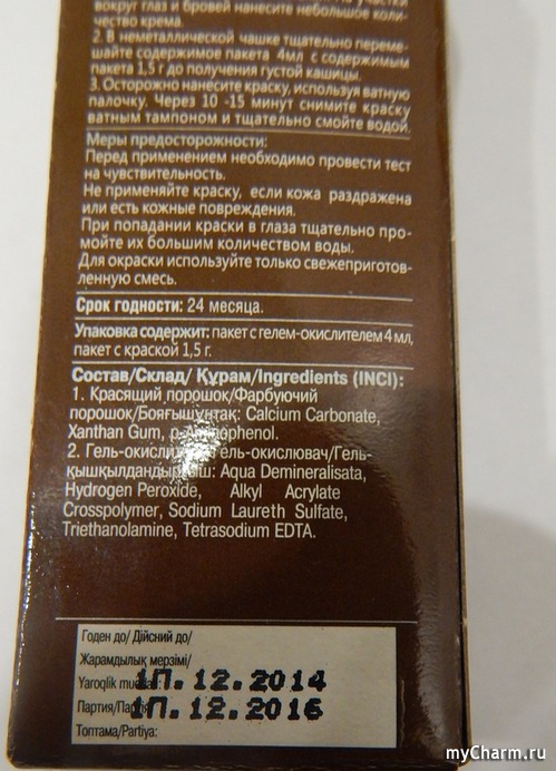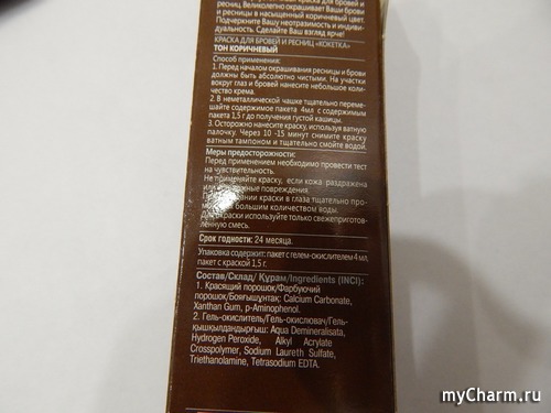 Почему-то мне показалось, что черная краска, которой я окрашивала брови и ресницы первый раз, была более качественной либо свежее, чем коричневая.