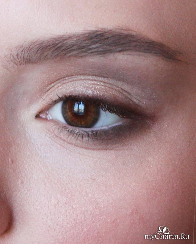 1 На складку и нижнее веко пушистой кистью нанесла медный оттенок;